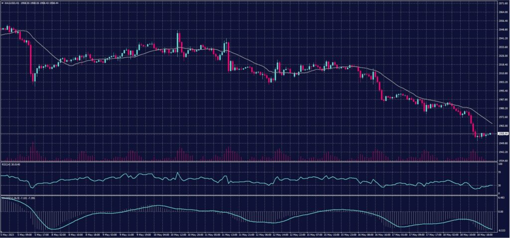 واصل الذهب تراجعه يوم الخميس بعدما أدت بيانات اقتصادية قوية جديدة بالولايات المتحدة لانحسار التوقعات بأن يهدئ مجلس الاحتياطي الفيدرالي وتيرة رفع أسعار الفائدة كما تعرض المعدن النفيس لضغوط بسبب التفاؤل بشأن إمكانية التوصل لاتفاق لرفع سقف الدين.