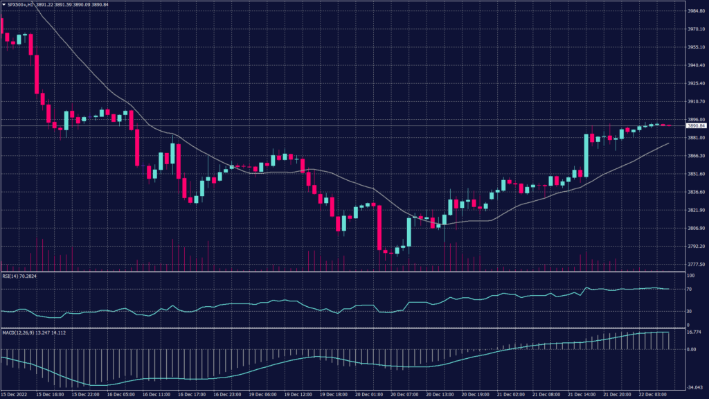 SPX500 shows a slight uptrend on the hourly chart but the daily chart refutes that and confirms the continuation of the downtrend. There will be fluctuations between 3,820 and 3,920 but the overall trend remains negative.
