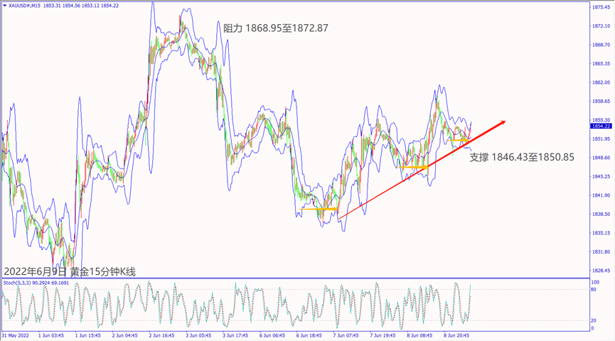 周三(8日)黄金价格大都在1850关口附近震荡整理。欧元区公布经济数据利好欧元,也让美元指数出现下跌走势,带动黄金价格从低点上涨约15美元。晚间美国财长耶伦讲话利好美元反弹,也让黄金价格再度回落至1850美元附近整理。