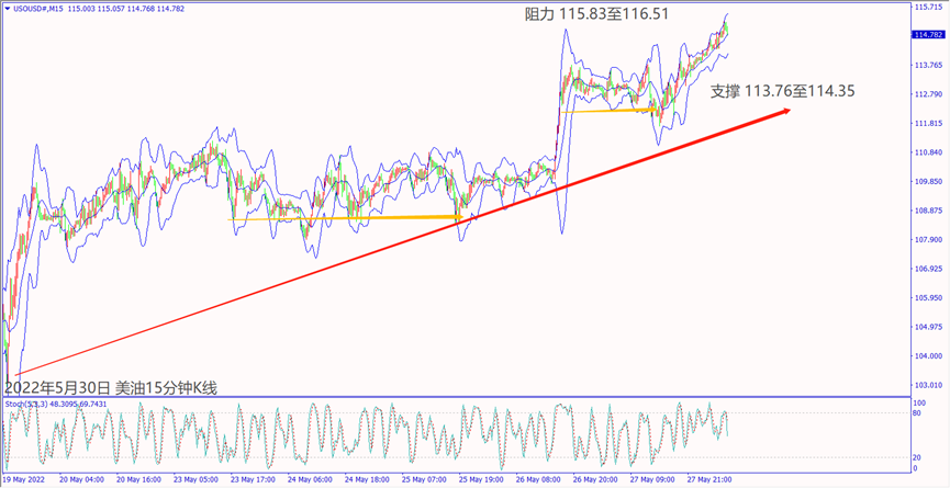 上周五(27日)美国公布新冠确诊人数较前日大减约5万人,以及美国公布个人支出月率利好,带动道琼斯和纳指皆涨超500点。美油价格大都介于113.00关口附近震荡整理,直到G7能源部长在公报中承诺,将加快能源转型,未来不再销售新的柴油和汽油汽车,一度造成美油急跌掼破112.00关口。晚间美国公布经济数据利好带动美股大涨,推升美油价格逆势上涨冲上114.00关口。