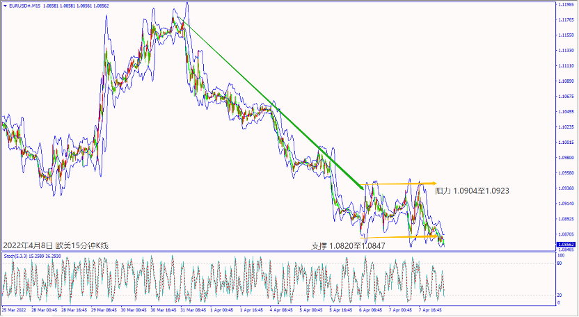 昨天(7日)欧元区公布零售销售数据不佳,造成德指和道琼斯反转下跌逾300点。晚间美国公布失业数据利好,加上美国和IEA皆释放储备石油解决制裁俄罗斯问题,利好道琼斯和纳指上涨逾1%。美油价格大都在97美元附近震荡整理。美国以及IEA预期未来6个月向全球市场投放石油储备,造成美油一度下跌近5%。周五(8日)清晨美国国会通过俄罗斯石油进口禁令法案,美油价格反弹至96关口上方整理。