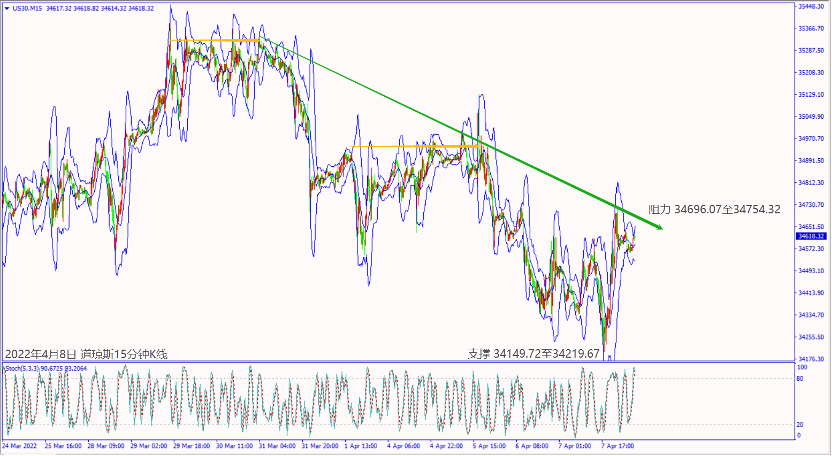 昨天(7日)美国公布失业数据利好,带动道琼斯纳指逆势收阳。预期今天(8日)欧元区公布当日新冠确诊人数持续下降,德指一旦突破小时布林带上轨线14,239,建议可短多操作。预期今天美国公布经济数据不佳,道琼斯冲不过5日均线34,659,建议可偏空操作。
