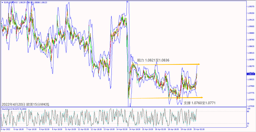 今天(20日)美媒报导美国准备再对乌提供8亿美元军事援助,早上造成美元指数下跌逾25个点。预期今天欧洲央行公布欧元区经济调查调降GDP增长,可能造成欧美和镑美下跌。预期周四(21日)清晨美联储公布经济褐皮书对通胀冲击经济示警,可能造成美元指数大幅度下跌修正。