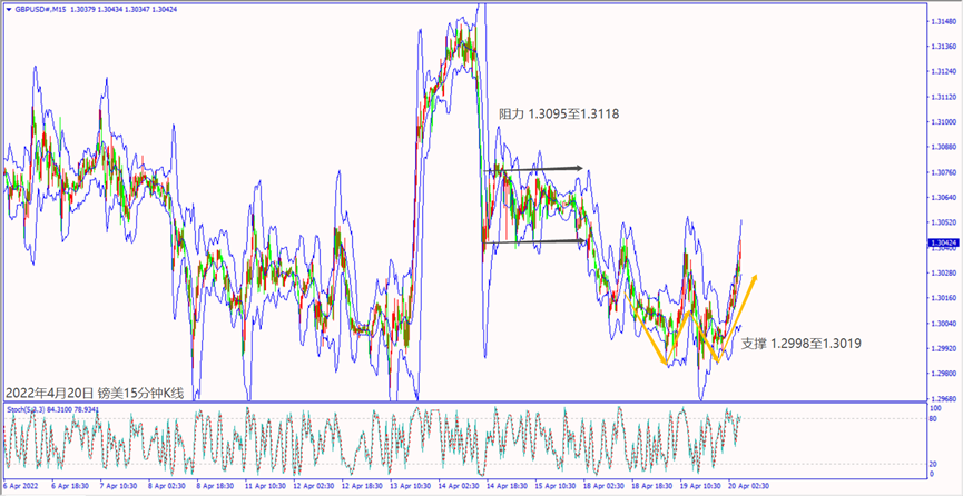 昨天(19日)IMF称俄乌冲突带动食品、能源和金属的价格上涨有望利好澳大利亚出口,澳美若突破5日均线0.7383,建议可短多操作。预期今天(20日)欧洲央行公布欧元区经济调查调降GDP增长,欧美冲不过5日均线1.0801,建议可偏空操作。预期周四(21日)清晨美联储公布经济褐皮书对通胀冲击经济示警恐造成美元回调,镑美一旦突破5日均线1.3030,建议可短多操作。
