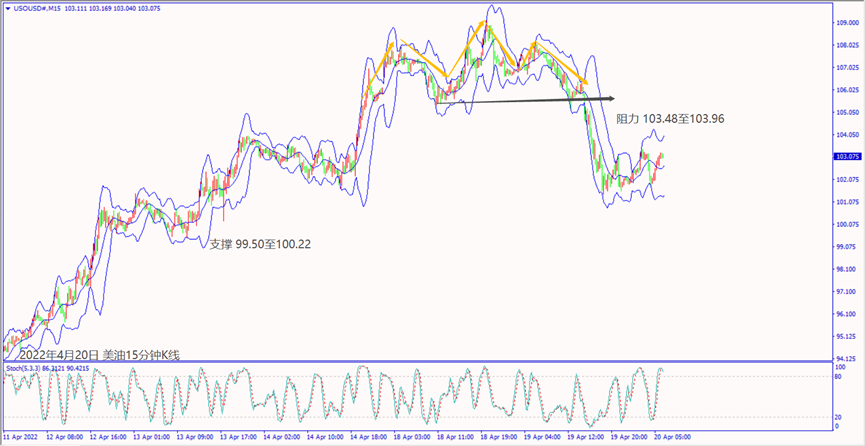 昨天(19日)受到IMF调降全球今明两年经济增长,造成美油价格大跌约6%。预期今天(20日)欧洲央行和周四(21日)清晨美联储经济褐皮书对战争和通胀冲击经济示警,美油价格冲不过30日均线102.94美元,建议可短空操作。