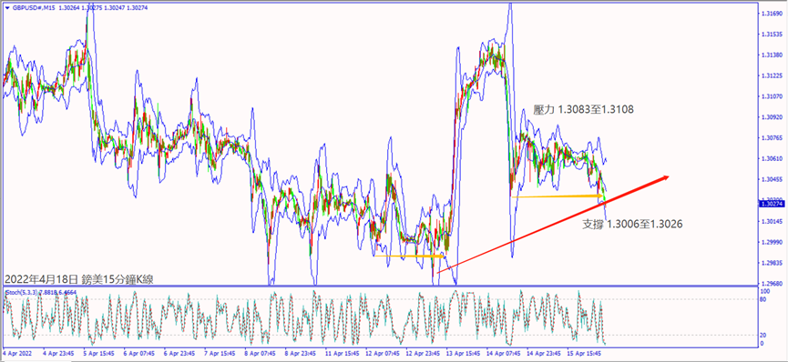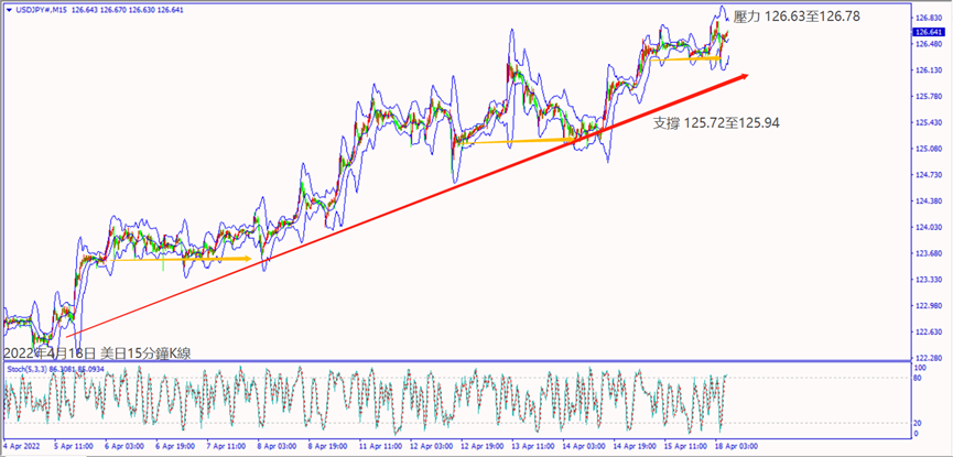今天(18日)日本央行行長黑田東彥稱日元大幅波動可能對日本經濟產生負面影響,短線如果日本央行干預造成日元上漲,美日一旦跌破小時布林帶下軌線126.30,建議可短空操作。俄烏戰爭仍維持戰火,歐美若跌破小時布林帶下軌線1.0788,建議可偏空操作。預期今天美國公佈新冠疫情持續攀升恐造成美元指數回調,鎊美一旦突破5日均線1.3053,建議可短多操作。