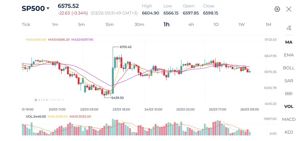 Chỉ số S&P 500 hiện đang giao dịch quanh mức 6.575 và tiếp tục di chuyển trong phạm vi tích lũy sau đợt hồi phục mạnh mẽ từ mức đáy 6.439. Thị trường hiện đang thiếu động lực định hướng rõ ràng, với mức giá dao động giữa vùng hỗ trợ gần 6.500 và vùng kháng cự quanh 6.650.