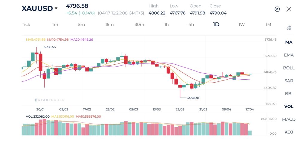 Một đợt bứt phá bền vững trên mốc $4.848 sẽ củng cố triển vọng tiếp tục tăng giá và mở ra không gian cho một đợt đẩy cao hơn nữa. Nếu giá không thể vượt qua mức kháng cự này, thị trường có thể duy trì trạng thái đi ngang trong biên độ $4.750–$4.850. Mức hỗ trợ ban đầu nằm gần $4.755, tiếp theo là mức hỗ trợ mạnh hơn quanh $4.646. Nhìn chung, xu hướng chủ đạo là trung lập đến tăng giá khi giá vẫn nằm trên đường MA20 đang đi lên.