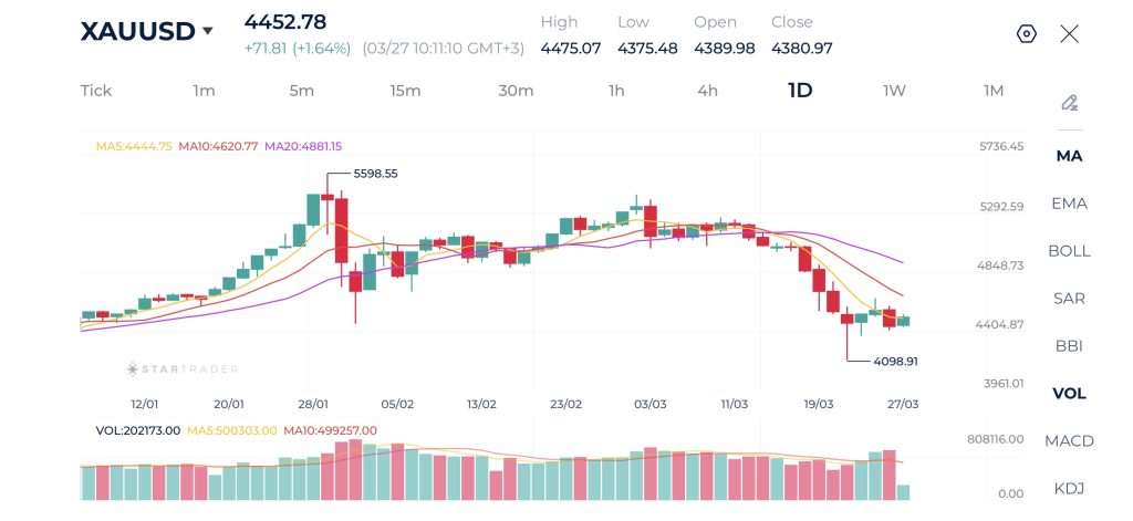 Giá vàng dao động trong một biên độ hẹp quanh mức 4.400 – 4.600 USD, trong khi bạc cũng cho thấy diễn biến giằng co tương tự. Thông thường, những căng thẳng địa chính trị như hiện nay sẽ đẩy giá kim loại quý lên cao, nhưng lần này phản ứng của thị trường lại khá mờ nhạt.